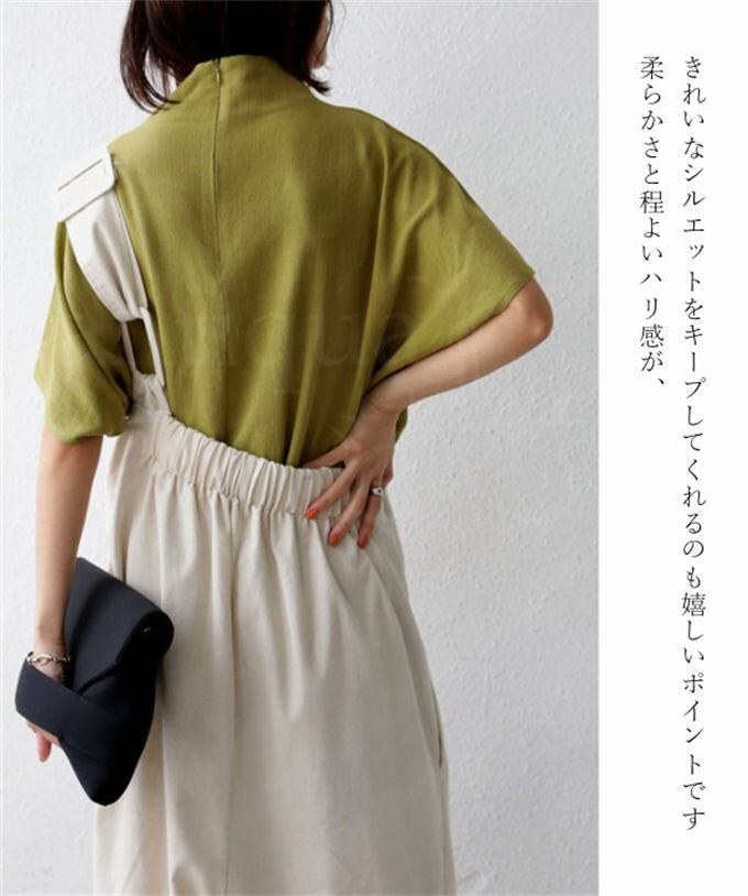 Tシャツ レディース 半袖 綿麻 タートルネック プルオーバー トップス インナー 無地 シンプル ゆったり 体型カバー 着痩せ 通学 通勤 オフィス 仕事 きれいめ 韓国ファッション 夏 送料無料