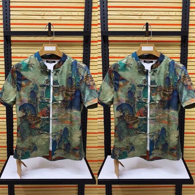 シャツ 半袖シャツ メンズ サマーシャツ ブラウス 無地 チャイナ風 チャイナシャツ 唐装シャツ 中式上着 カジュアル トップス おしゃれ 太極拳服 普段着 唐装 漢服 春 夏