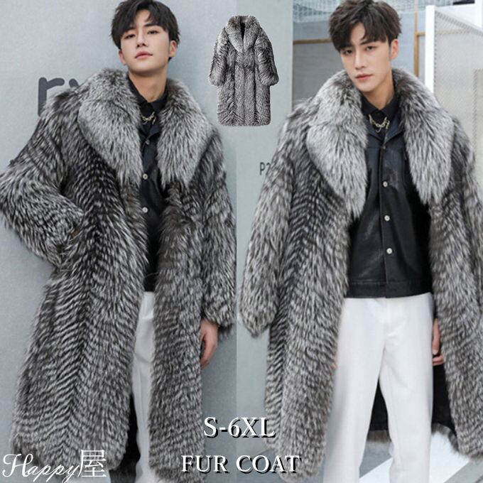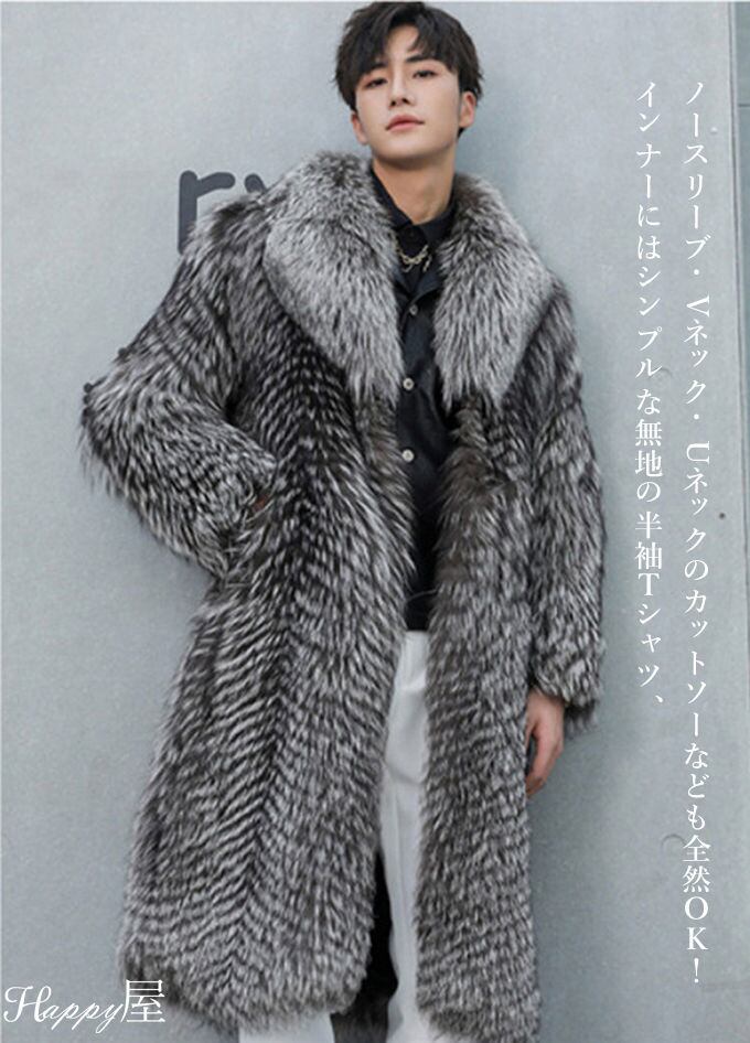 ファーコート メンズ アウター 毛皮コート 厚手 フェイクファー フォックス ロング丈 無地 アウターコート 秋冬 暖かい 防寒服 カジュアル 贅沢 上着 人気 大きいサイズ 送料無料
