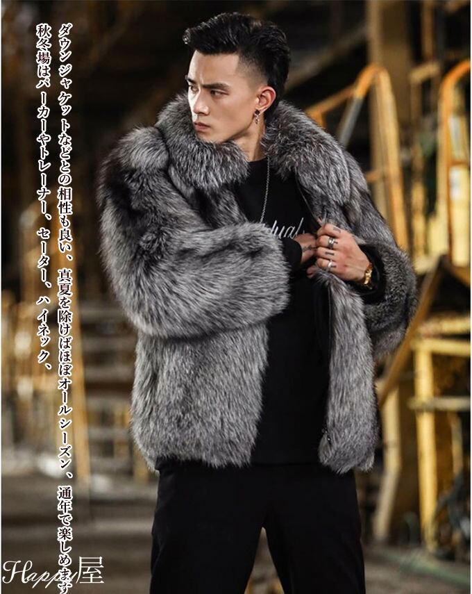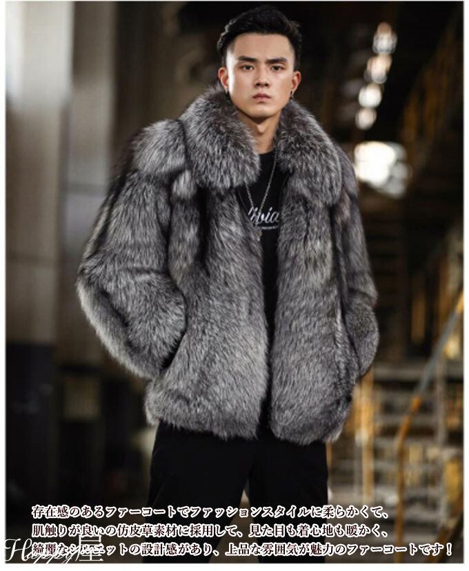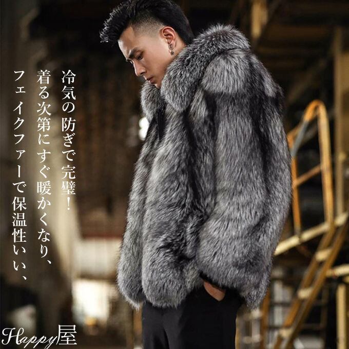 ファーコート メンズ ファー コート 毛皮コート ジャンパー フォックス ゆったり ショート丈 通勤 カジュアル 秋冬 防寒 もこもこ お洒落 フォーマル アウター 送料無料