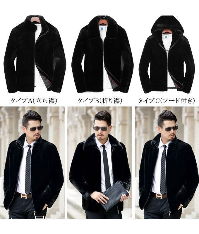 ファーコート メンズ 毛皮コート ショート丈 コート ミンク風 フェイクファー 3タイプ 立ち襟 折り襟 フード付き ジャケット 上着 暖かい アウター 秋冬 防寒 ブラック グレー 送料無料