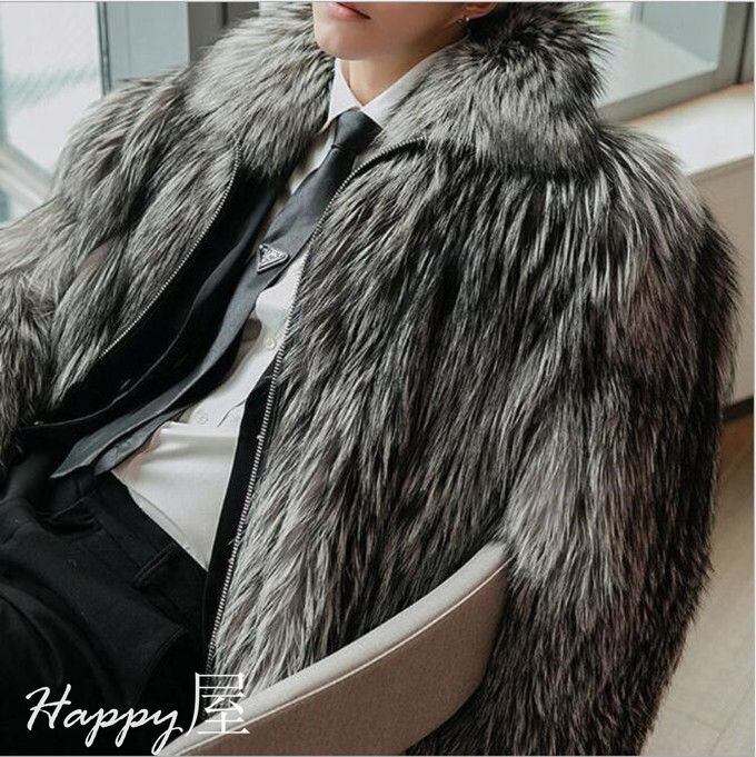 毛皮コート ファーコート メンズ ショットコート ボリュームファー フォクス毛皮 フェイクファー ファスナー付き おしゃれ 上着 暖かい 秋冬 防寒 高級素材 大きいサイズ メンズファッション 送料無料