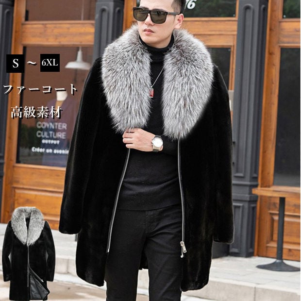 毛皮コート ファーコート メンズ ロングコート ミンク ボリュームフォクス襟 おしゃれ ファスナー付き 上着 暖かい 秋冬 防寒 高級素材 メンズファッション 送料無料