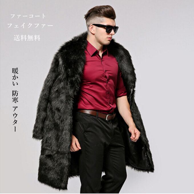 秋冬新作 ファーコート 毛皮コート メンズ ロングコート フォクス フェイクファー 大きいサイズ ボリューム襟 おしゃれ 暖かい 防寒 アウター 秋冬 新作 送料無料