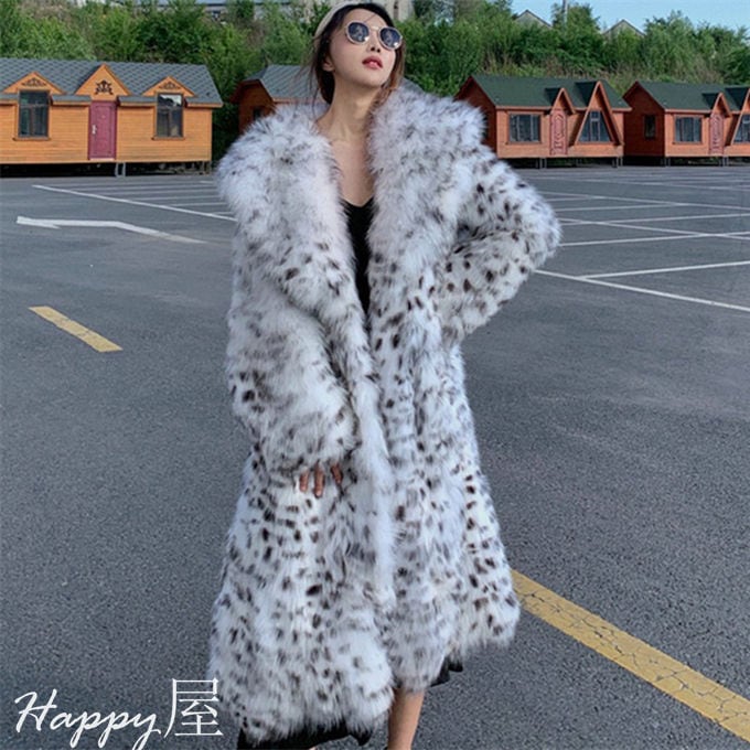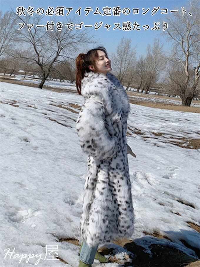 ファーコート レディース 毛皮コート ロッグコート ヒョウ柄 フォックス風 ボリュームファー フェイクファー 大きいサイズ 上着 モコモコ ふわふわ 暖かい 防寒 お洒落 キレイめ 高級素材 冬服 冬新作 送料無料
