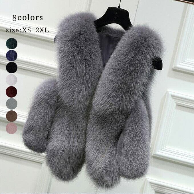 毛皮ベスト ファーベスト ファー付きチョッキ 袖なし 毛皮 ファーベスト フェイクファー フォックス ロッグ 人気 結婚式披露宴 エレガント 秋物 春/秋/冬 新作 送料無料