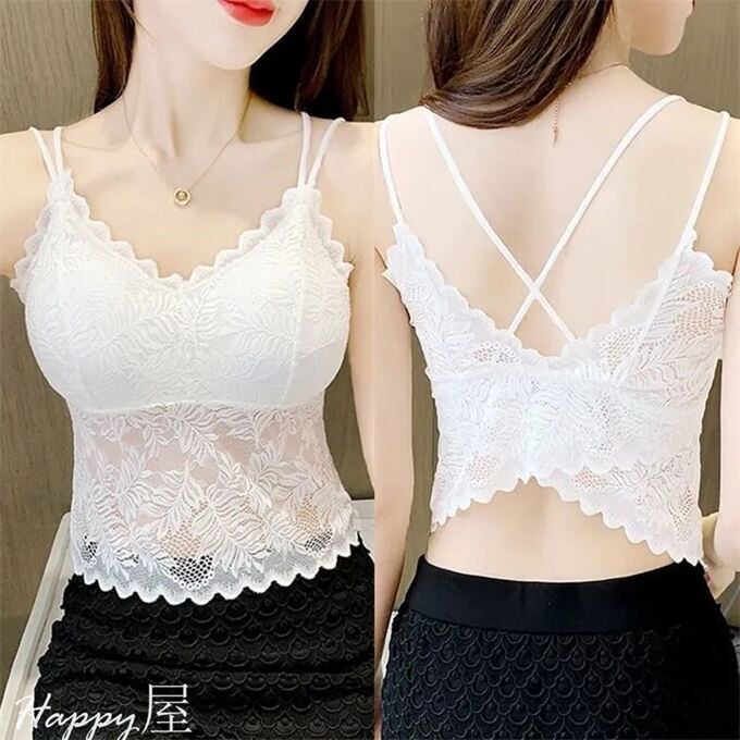 ブラトップ レディース カップ付きキャミソール レース カップ入り 見せブラ ミディ丈 背中あき インナー 背中見せ バッククロス レイヤード 重ね着 セクシー 春 夏 秋 送料無料
