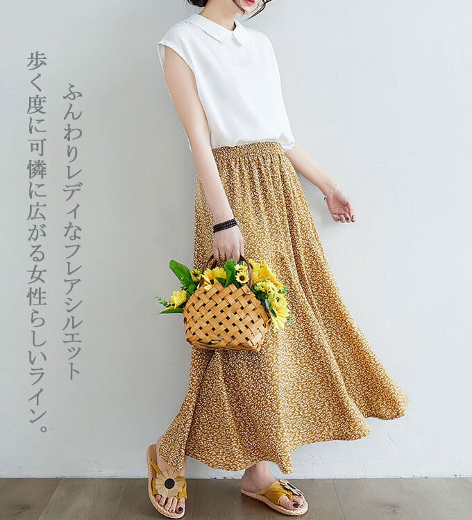花柄 スカート ロング レディース 総柄 カジュアル きれいめ フレアスカート 定番 上品 レトロ オフィス 通勤 ウエストゴム 揺れる 薄手 裏地付き 春 夏 秋 ロングシーズン おしゃれ かわいい 夏新作 送料無料