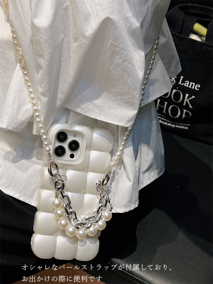 iPhoneパールストラップ スマホショルダー チェーンストラップ ショルダーストラップ ストラップホルダー付き パールストラップiPhoneケース付き ストラップ ケース スマホケース パール パールチェーン 携帯電話ケース 肩掛け 首掛け おしゃれ かわいい プレゼント