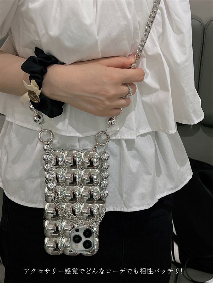 iPhoneストラップ スマホショルダー チェーンストラップ ショルダーストラップ 肩掛け ストラップ ケース 携帯電話ケース プレゼント おしゃれ かわいい スマホストラップ シルバー メタルチェーン フォンタブ ロングストラップ iPhone14 14pro 14Promax
