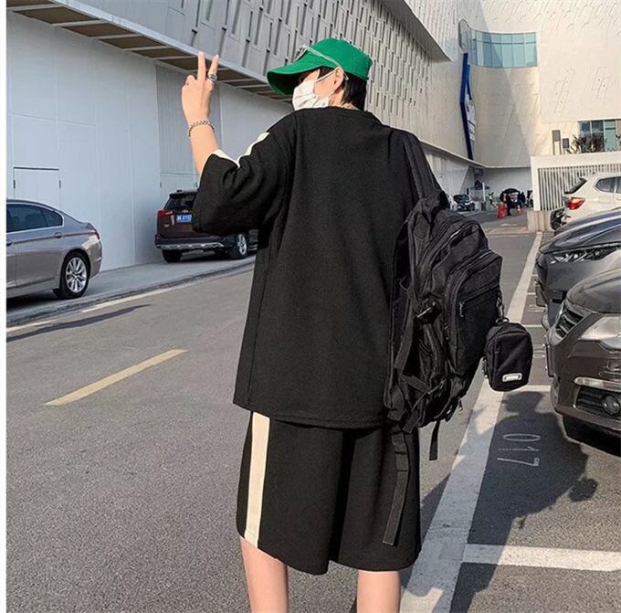 セットアップ メンズ シンプル ワーク風 5分袖 tシャツ ショートパンツ スポーツ スウェット トレーニング ゆったり 大きいサイズ 通勤 通学 韓国 ファッション 夏服 送料無料