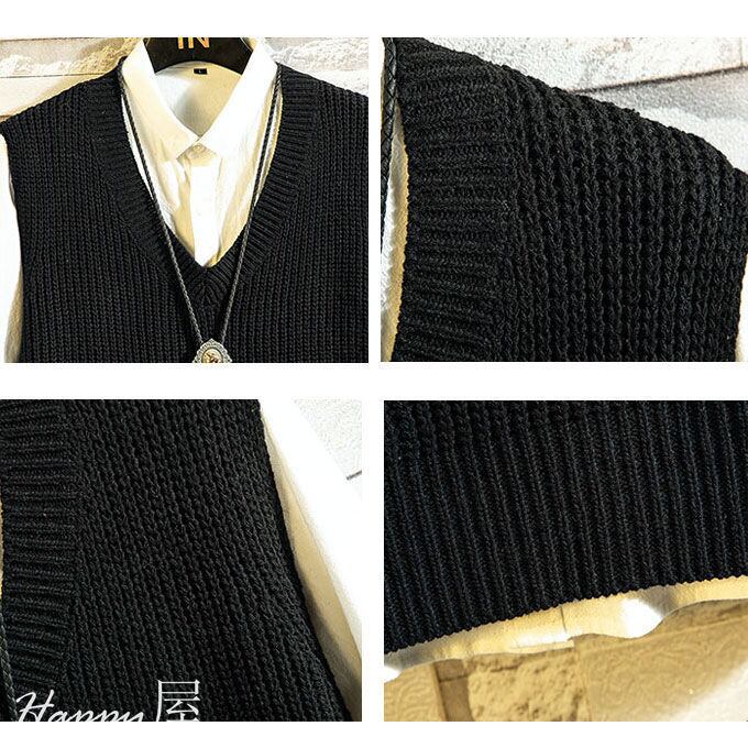 ニットベスト メンズ Vネックベスト ゆったり レイヤード カジュアル 無地 トップス シンプル 重ね着 通学 通勤 おしゃれ 秋冬 秋新作 送料無料