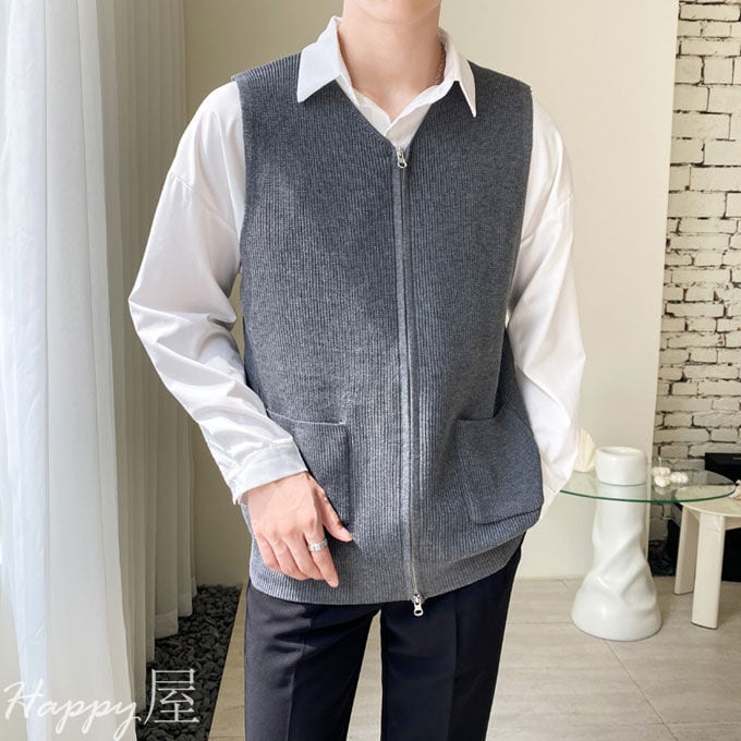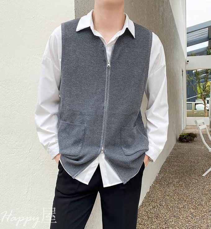ニットベスト ニットカーディガン メンズ ベスト 前開き ノースリーブ ファスナー付き トップス 無地 セーター カジュアル おしゃれ bf 通学 通勤 秋物 冬物 新作 送料無料