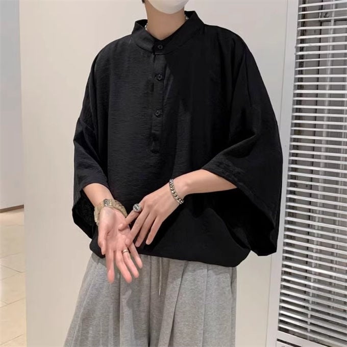シャツ メンズ 五分袖 ドルマンスリーブ トップス 無地 カジュアルシャツ ビジネス おしゃれ かっこいい ゆったり 大きいサイズ ビッグシルエット 夏服 韓国 ファッション 送料無料