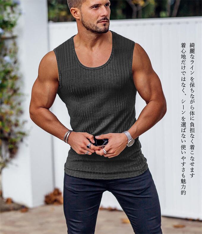 タンクトップ メンズ ノースリーブ インナー トップス リブニット編み カットソー スポーツウェア トレーニング フィットネス 筋トレ 肌着 男性 伸縮性 スリム 細身 涼しい 快適 オシャレ おしゃれ カジュアル シンプル 夏物 送料無料