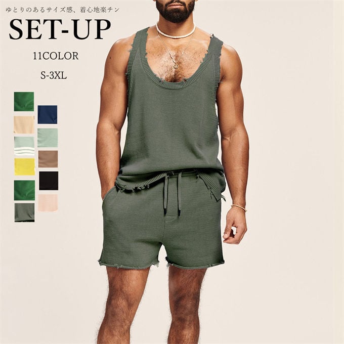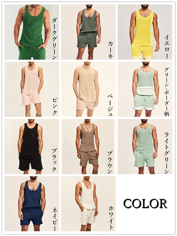 セットアップ メンズ 夏 ノースリーブ 春 メンズ 上下セット タンクトップ ショートパンツ カットソー スウェット ジャージ トレーナー トップス ズボン ゆったり 大きめ 春夏 大きいサイズ 部屋着 プルオーバー カジュアル アウトドア 送料無料