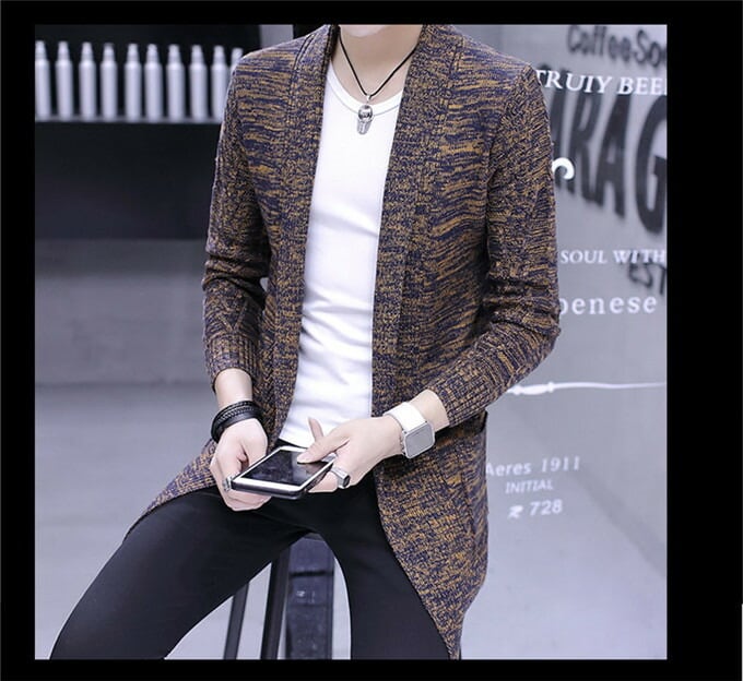 カーディガン ショールカラー メンズ ニット MIXカラー 長袖 ロングカーデ vネック コート ロング丈 コーディガン アウター 厚手 ゆったり カジュアル おしゃれ スプリング 春 秋 冬 送料無料