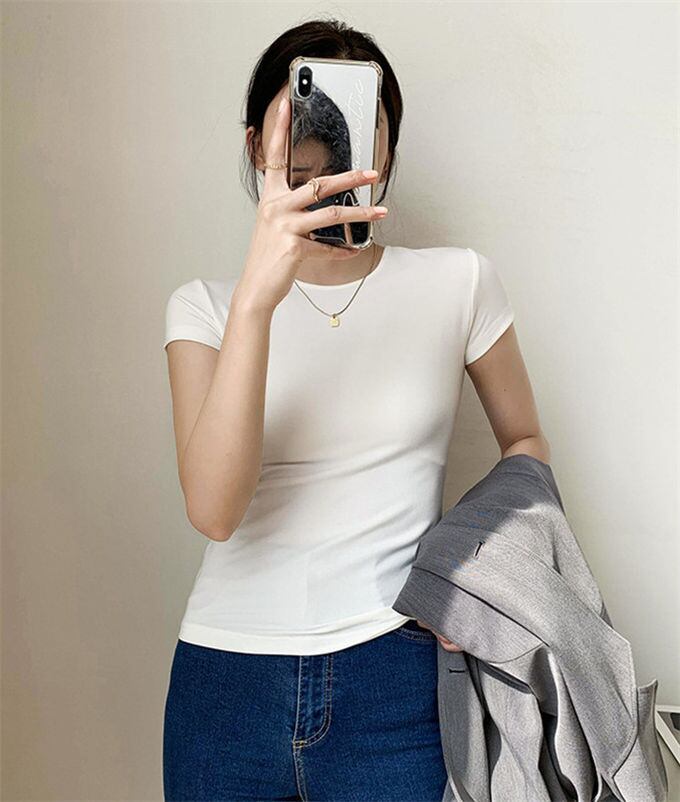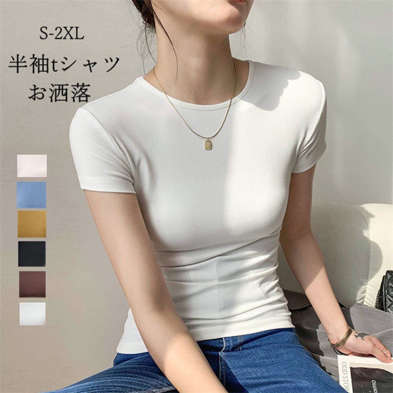 半袖tシャツ レディース 無地 シンプル ショート丈 トップス インナー 綿 体型カバー 着やせ タイト 細見え 通学 通勤 お洒落 きれいめ カジュアル 可愛い 夏物 送料無料