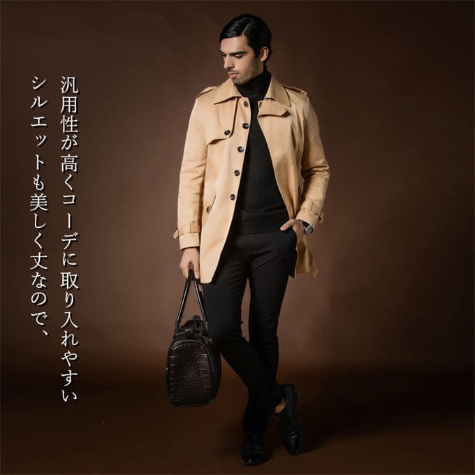 トレンチコート メンズ コート ミドル丈 無地 スプリングコート ジャケット メンズコート 通勤 ビジネス カジュアル 紳士服 アウター シングル 体型カバー 韓国風 メンズファッション 春 秋 送料無料