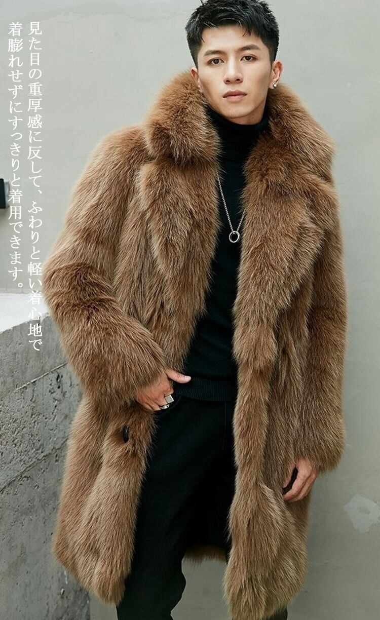 2023秋冬新作 ファーコート メンズ 毛皮コート フォックス メンズファー フェイクファー ロングコート 大きいサイズ アウター 高級 おしゃれ 上着 暖かい 防寒 フォックス風 贅沢 大衿ロッグジャケット メンズファッション 送料無料
