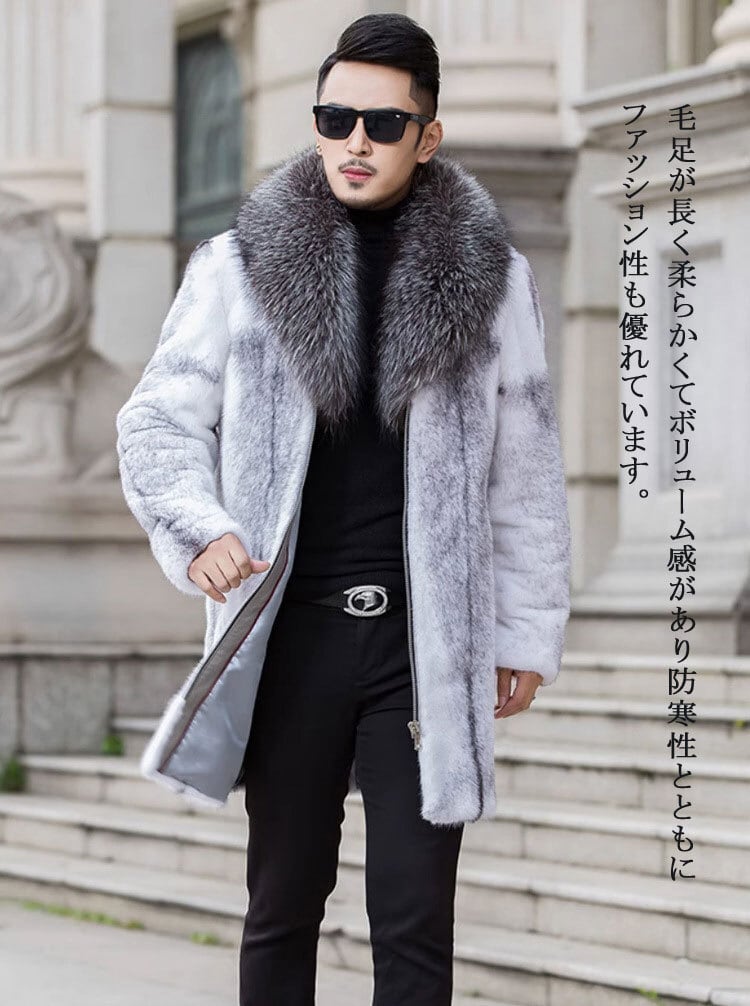 2023秋冬新作 ファーコート メンズ 毛皮コート ミンク メンズファー フェイクファー ミドル丈コート フォックス襟 大きいサイズ アウター 高級 おしゃれ 上着 暖かい 毛質艶やか・柔らか ミンク風 モコモコ 贅沢 真冬 メンズファッション 送料無料