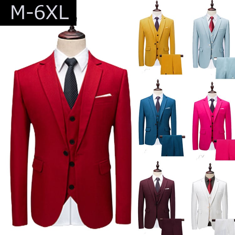 結婚式メンズ セットアップテーラードジャケット メンズ セットアップ 上下セット メンズスーツ フォーマル スリム 大きいサイズ スーツ 春物 春夏 スリーピーススーツ メンズ 二次会 パーティー セットアップスーツ 紳士服 就活 スーツ.