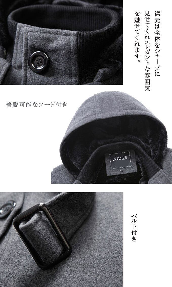 トレンチコート メンズ ウール コート ビジネスコート フード付き 裏起毛 裏ボア防寒 暖かい あったか ステンカラーコート ミドル丈 チェスターコート アウター 厚手 ビジネスコート 通勤 冬物 送料無料