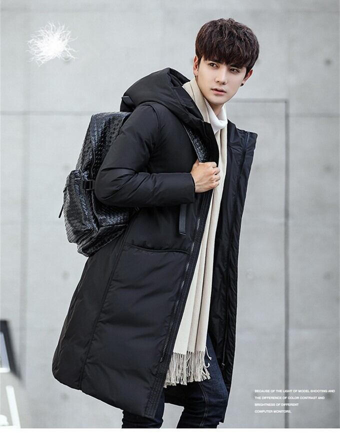 ダウンコート メンズ ダウンジャケット ダウンアウター フード付き ダウン 羽毛 ロング丈 細身 厚手 防寒 暖かい 冬服 冬物 新作 送料無料