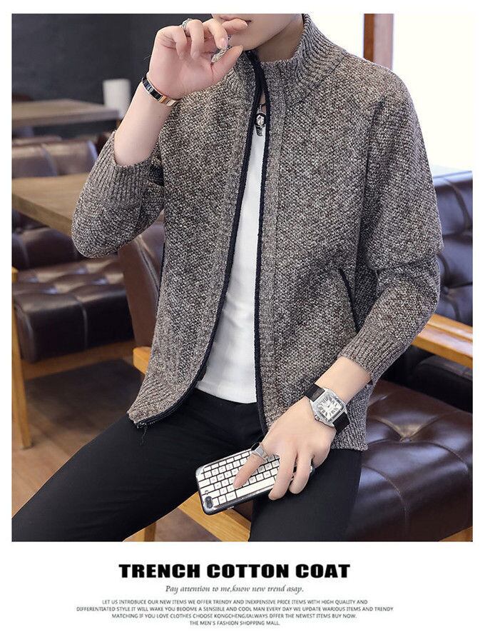 ニットカーディガン コート メンズ 長袖 アウター カーディガン ショート丈 立ち襟 おしゃれ カジュアル 通学 秋物 冬物 新作 送料無料