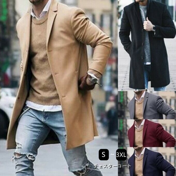 チェスターコート トレンチコート メンズ 長袖 無地 アウター ロングコート 防寒 暖かい あったか おしゃれ カジュアル 春物 秋物 冬物 新作 送料無料