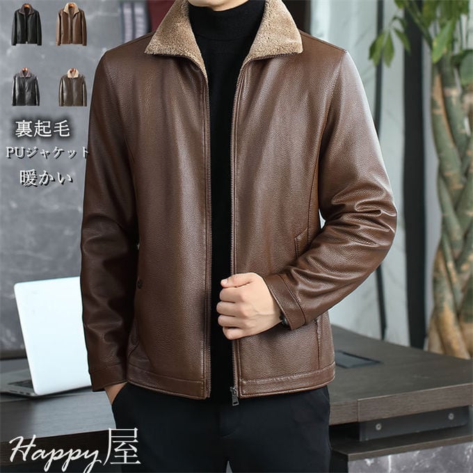 PUジャケット メンズ PUレザー ライダースジャケット ブルゾン 裏起毛 裏ボア 厚手 防寒 暖かい あったか カジュアル アウター 大きいサイズ 男性 お父さん 誕生日 冬物 送料無料