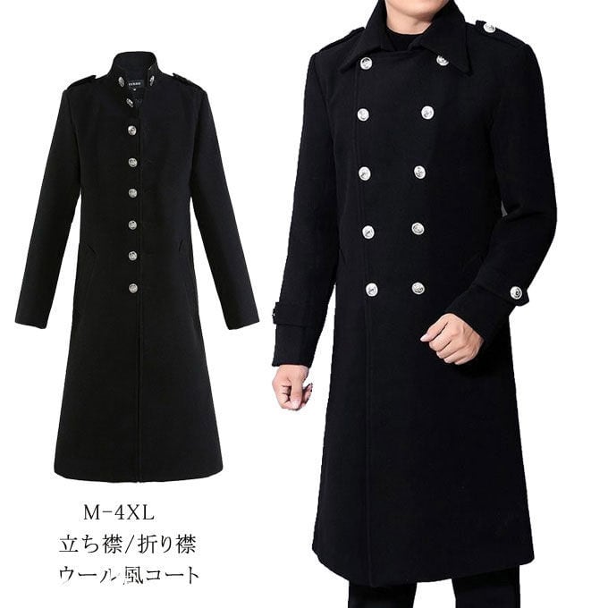 コート メンズ チェスターコート ウール風コート アウター カジュアル シンプル 厚手 ビジネスコート ロングコート ダブルボタン 立ち襟 折り襟 防寒 紳士服