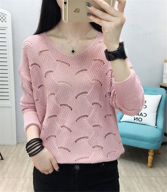 セーター ニット レディース Vネック 長袖 無地 透かし彫り UVカット ゆったり 着痩せ おしゃれ カジュアル オシャレ 薄手 通勤 ファッション 春夏 新作 送料無料