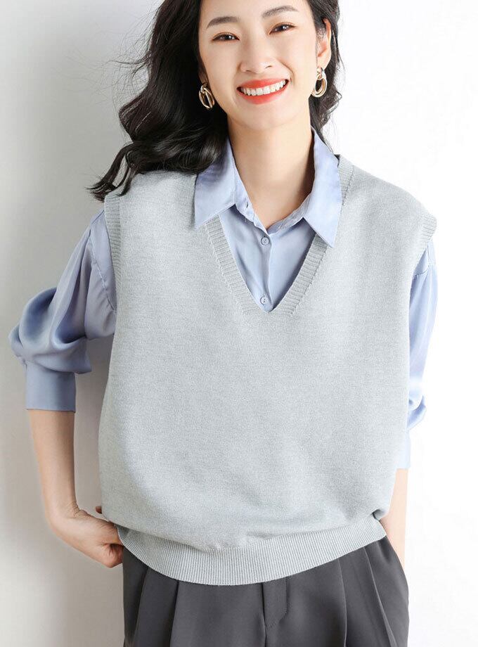 ニットベスト Vネック 秋冬 レディース ウール混 シンプル カシミアタッチ ベスト 重ね着 トップス ノースリーブ レイヤード 大人カジュアル ゆったり 秋物 新作