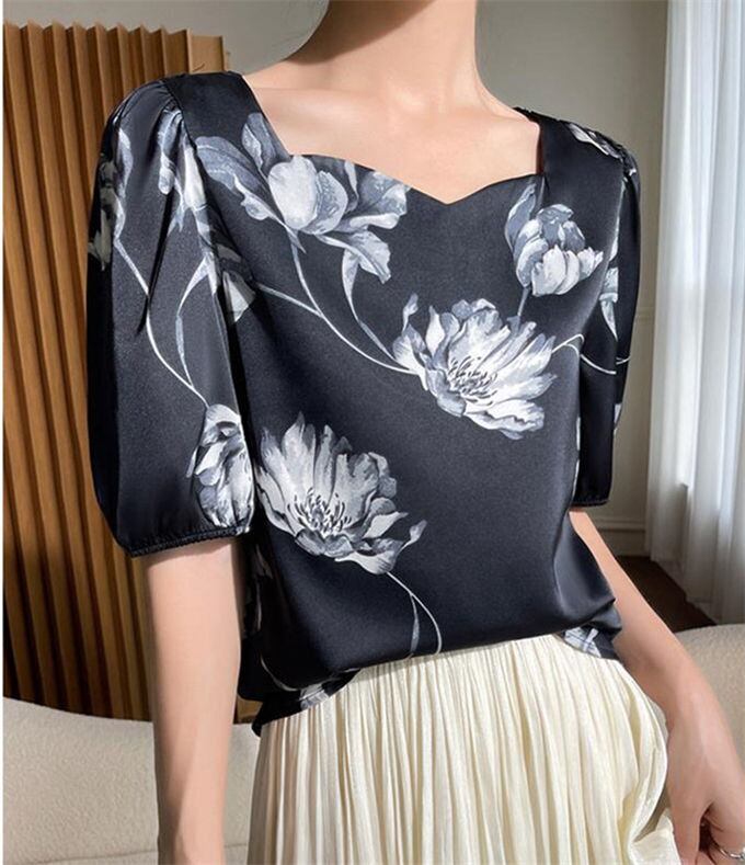 シャツブラウス Tシャツ レディース 五分袖 トップス プリント シルク風 優しい肌さわり 快適 ゆったり カジュアル 通勤 通学 上品 フォーマル OL きれいめ お洒落 春 夏 送料無料