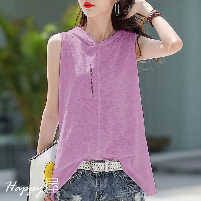 ノースリーブ トップス レディース フード付きタンクトップ 綿混 カジュアル ボーダー柄 後ろスリット レイヤード 重ね着 着回し 大人 大きいサイズ ゆったり おしゃれ 夏新作 送料無料