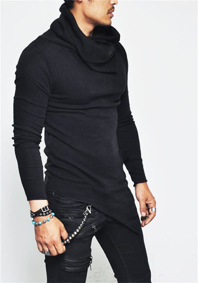 ロングtシャツ メンズ 長袖tシャツ ハイネック 大きいサイズ 無地 フリル トップス イレギュラー かっこいい 大きいサイズ 韓国ファッション 春 秋 送料無料