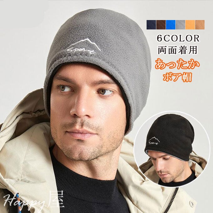 ボア帽 メンズ キャップ 秋冬 帽子 刺繡 おしゃれファッション 両面着用 帽子 裏起毛 耳あて付き 防風 防寒 自転車 バイク スキー 登山 ランニング 冬帽 送料無料