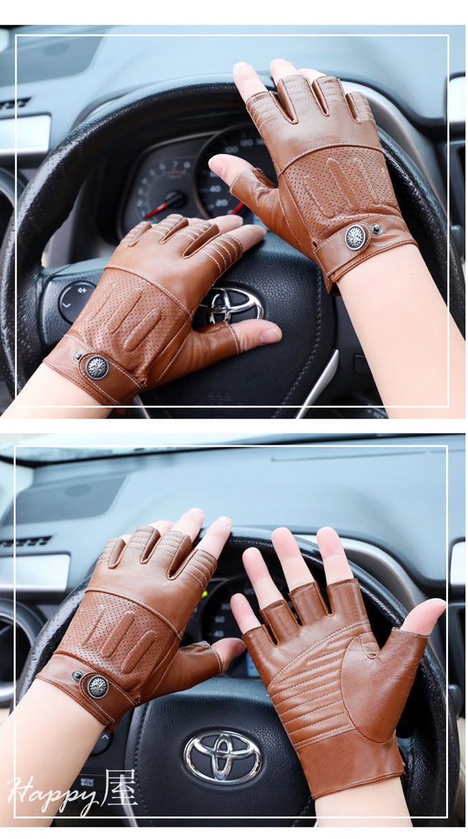 手袋 メンズ 指なし手袋 革 羊革 手袋 レザー メッシュ手袋 タッチ スマートフォン対応 グローブ スマホ レザー グローブ おしゃれ 裏地付 男性用 自転車・バイク・アウトドア・登山