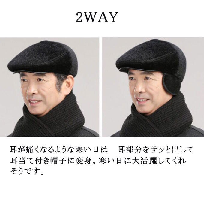 キャップ キャスケット メンズ 老人用 耳当て 帽子 ぼうし ボア付き 裏起毛 起毛帽子 ハット あったか 暖かい 防寒 日よけ UVカット アウトドア 冬物 送料無料