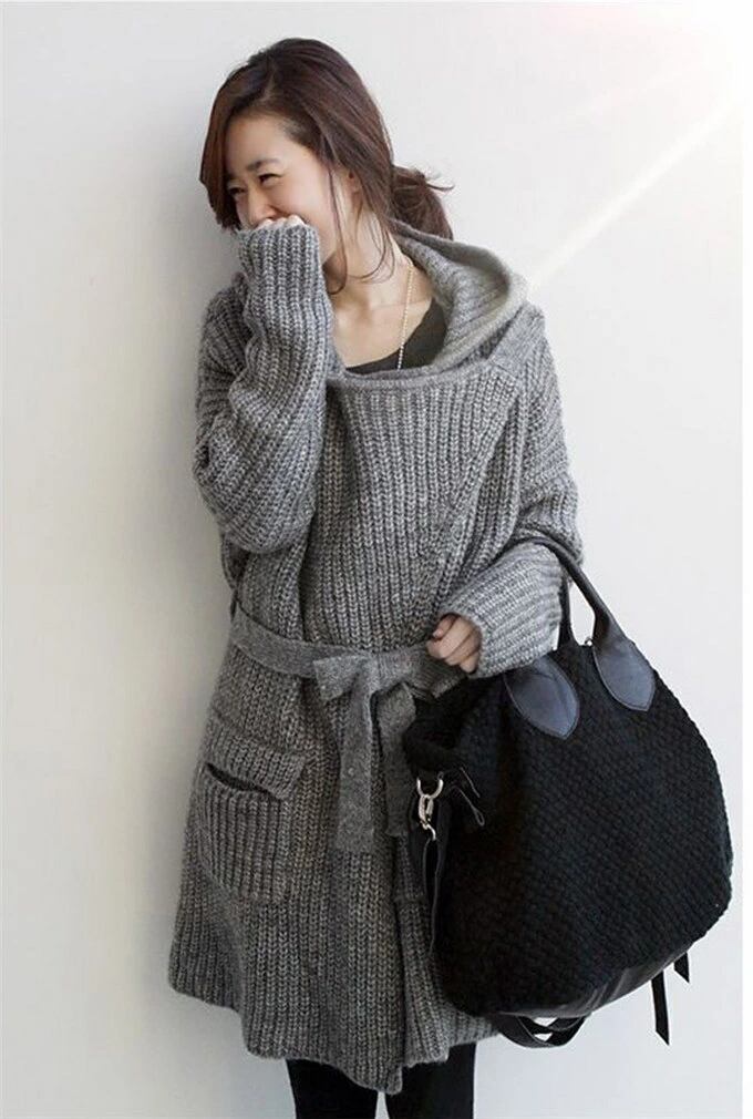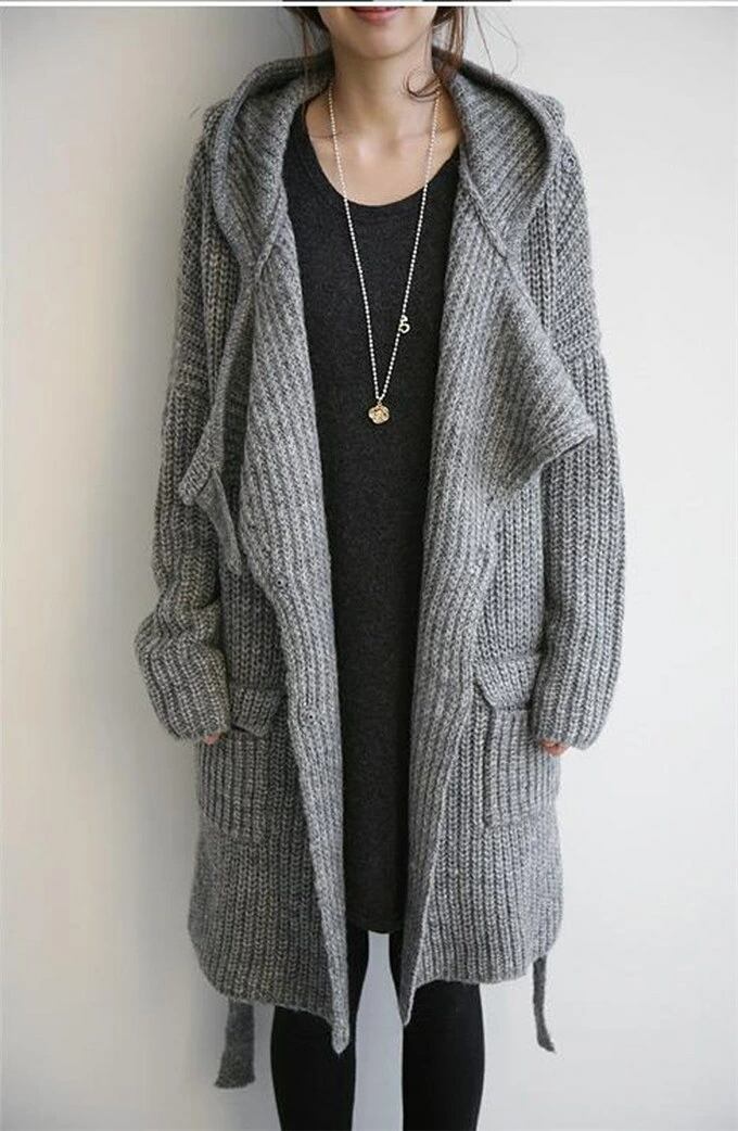 ニットカーディガン レディース 長袖 アウター 無地 フード付き ロング丈 厚手 ポケット付き ゆったり 体型カバー きれいめ 着痩せ 柔らかい おしゃれ カジュアル 通勤 秋冬 新作 送料無料