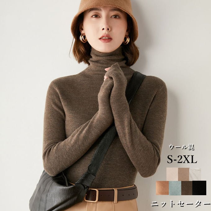 レディース 秋冬 セーター トップス 長袖 タートルネック ハイネック インナー ベーシック リブ トップス ストレッチ ウール混 カシミアタッチ 上品 きれいめ 至福の肌触り♪ ウール混ニット ふんわり 送料無料