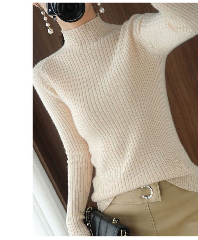 ニット リブニット レディース トップス カットソー ニットウエア ライトニット プルオーバー ハイネック インナー カシミアタッチ 長袖 長そで 暖かい 大きいサイズ リブ 秋冬 新作 秋冬コーデの必須アイテム、伸縮性抜群のリブニット!