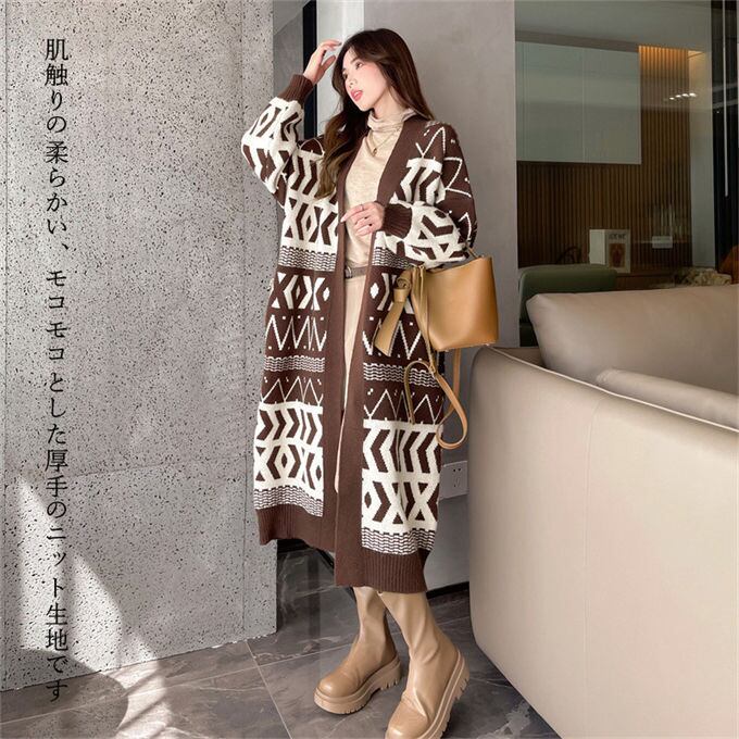 ニットカーディガン レディース Vネック ロングカーディガン アウター 長袖 シングル 羽織り ライトアウター 大きいサイズ 着痩せ お洒落 韓国ファッション 秋冬 送料無料