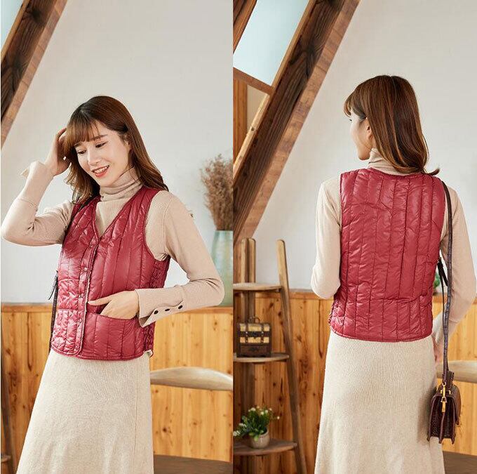 中綿ベスト インナーダウン風 ベスト レディースファッション トップス 無地 アウター 暖かい 軽量 ボア付き カジュアル かわいい 秋冬 新作 送料無料