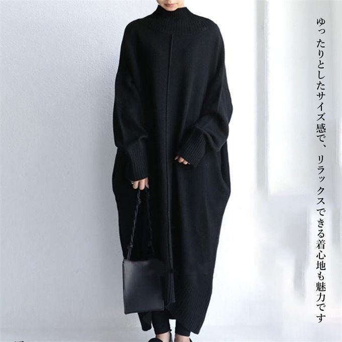 ニット ワンピース レディース ロングワンピ タートルネック きれいめ カジュアル 長袖 ミモレ丈 おしゃれ ドレス 大きいサイズ ゆったり オフィス ビジネス 20代 30代 40代 50代 春 秋 冬 送料無料