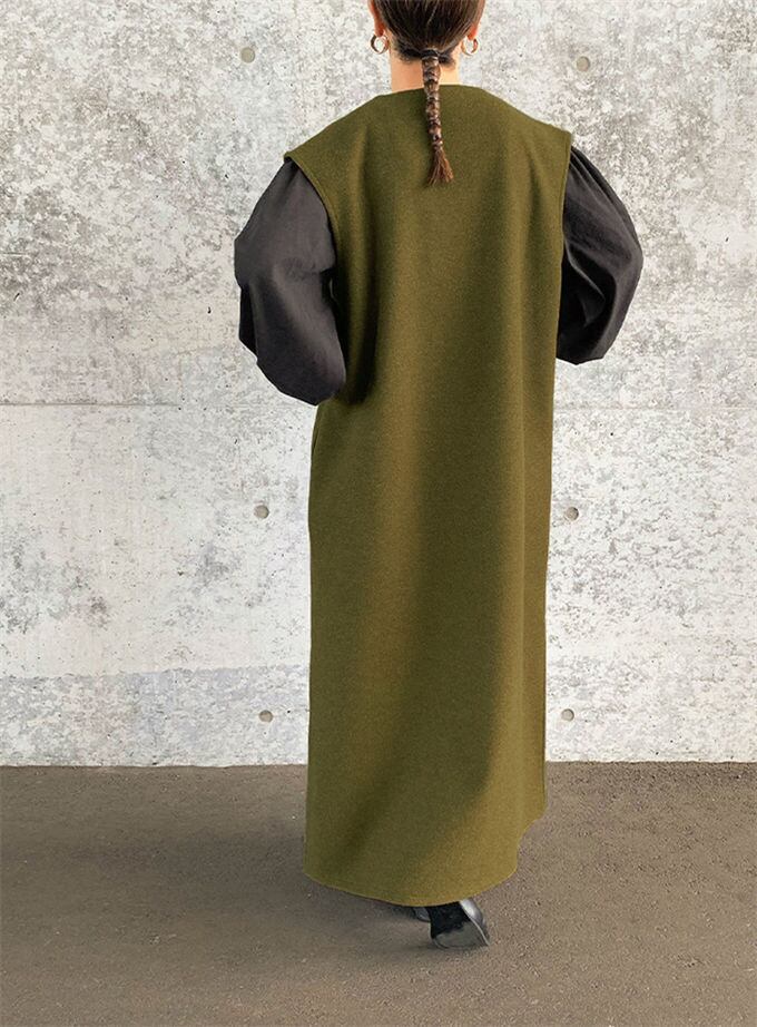 ロングベスト ノースリーブ レディース ワンピース 重ね着 レイヤード ロング Vネック カジュアル マキシ丈 裾スリット ゆったり 20代 30代 40代 OL フォーマル ファッション 送料無料