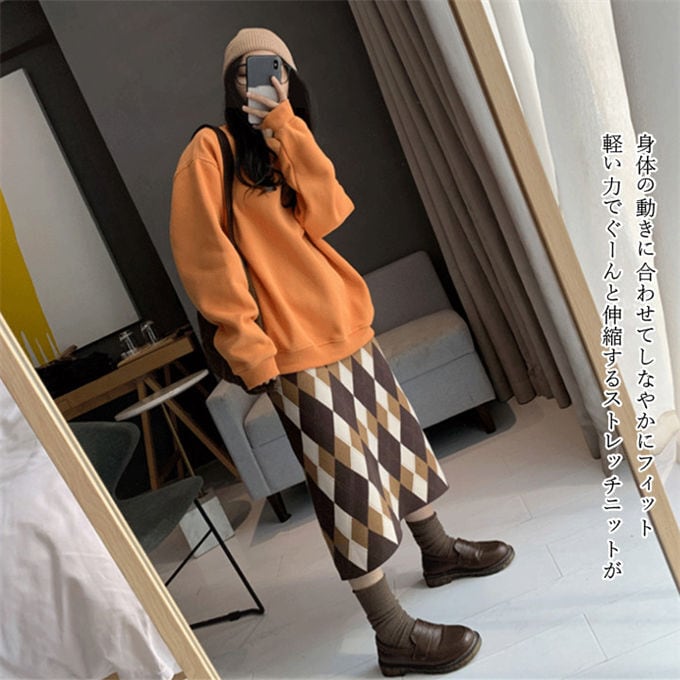 ニットスカート チェック柄 スカート レディース 春 秋 冬 ミモレ丈 ロング丈 タイトスカート ボトムス ハイウエスト 美脚 秋冬 おしゃれ 可愛い カジュアル 通学 通勤 送料無料
