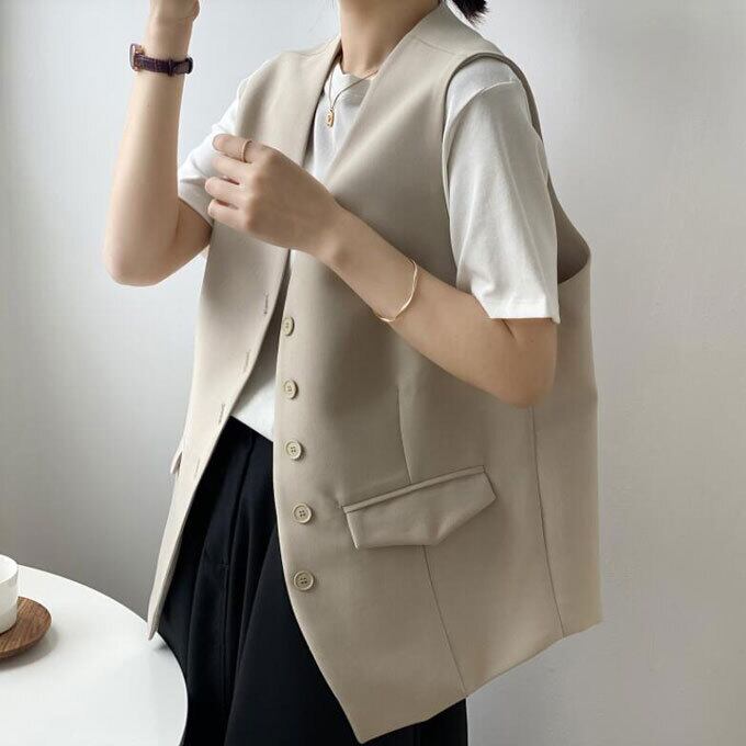ベスト ジレベスト レディース 前開き 大きいサイズ ジレ 無地 Vネック ジレ テーラードジャケット 韓国風 ノースリーブ 通勤 OL オフイス 上品 秋 ゆったり 大きいサイズ