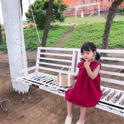 子供服 ワンピース 女の子 キッズ 子供ドレス 無地 ノースリーブ ショート丈 学園風 クルーネック コットン 切り替え シンプル ギフト 夏 かわいい おしゃれ 新作 送料無料